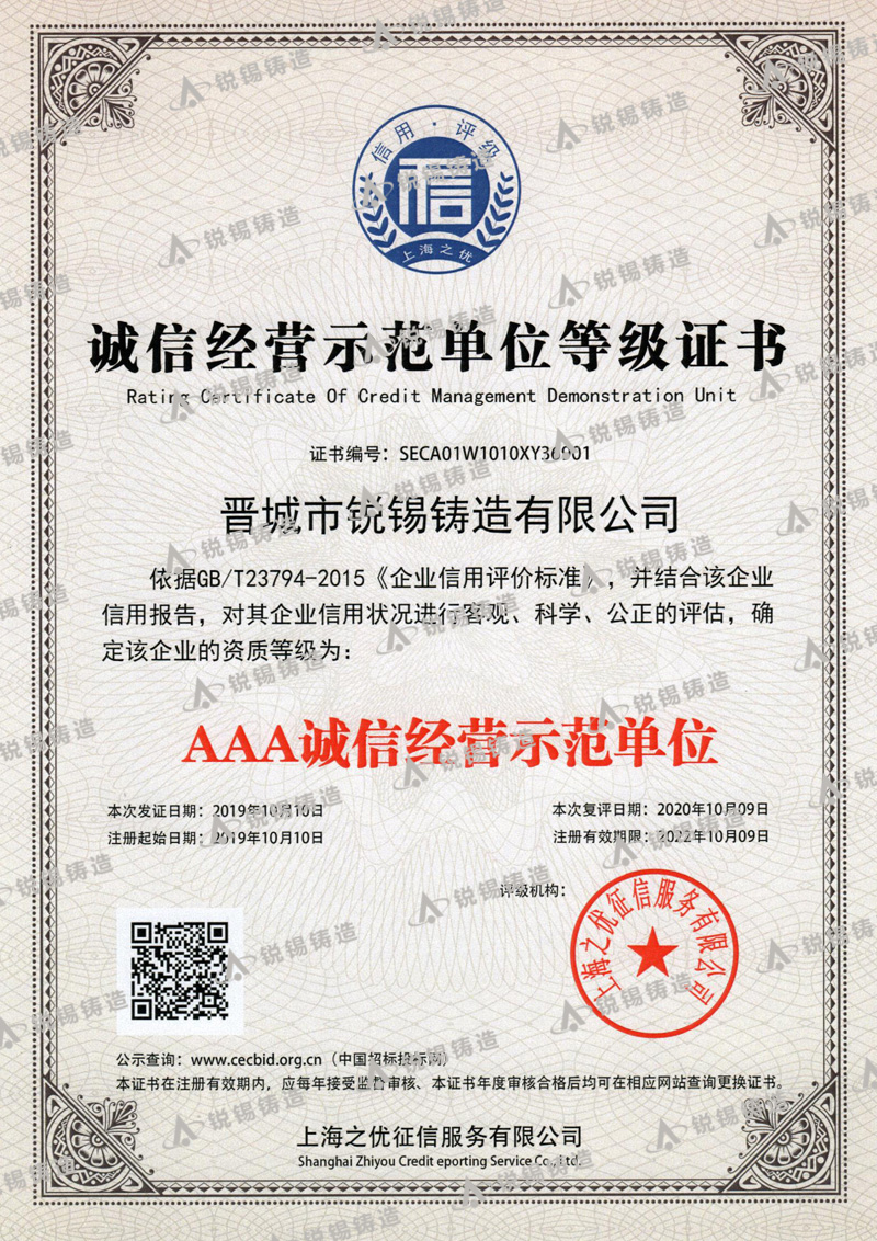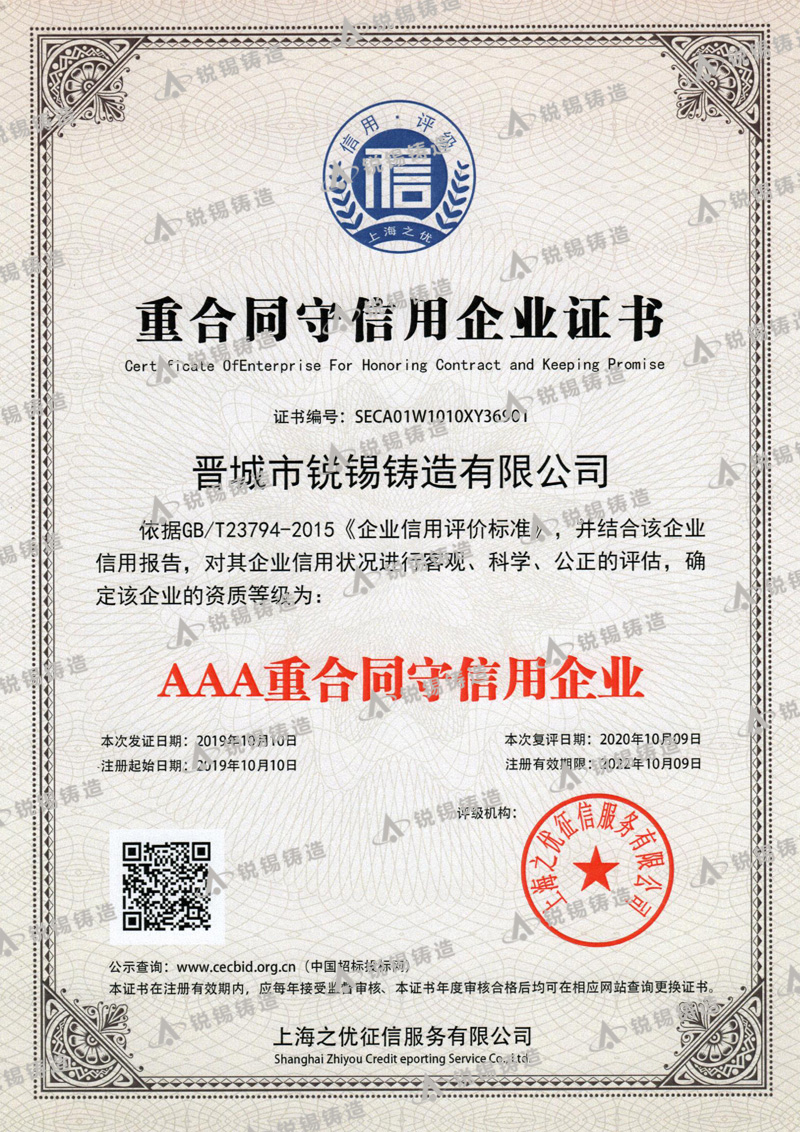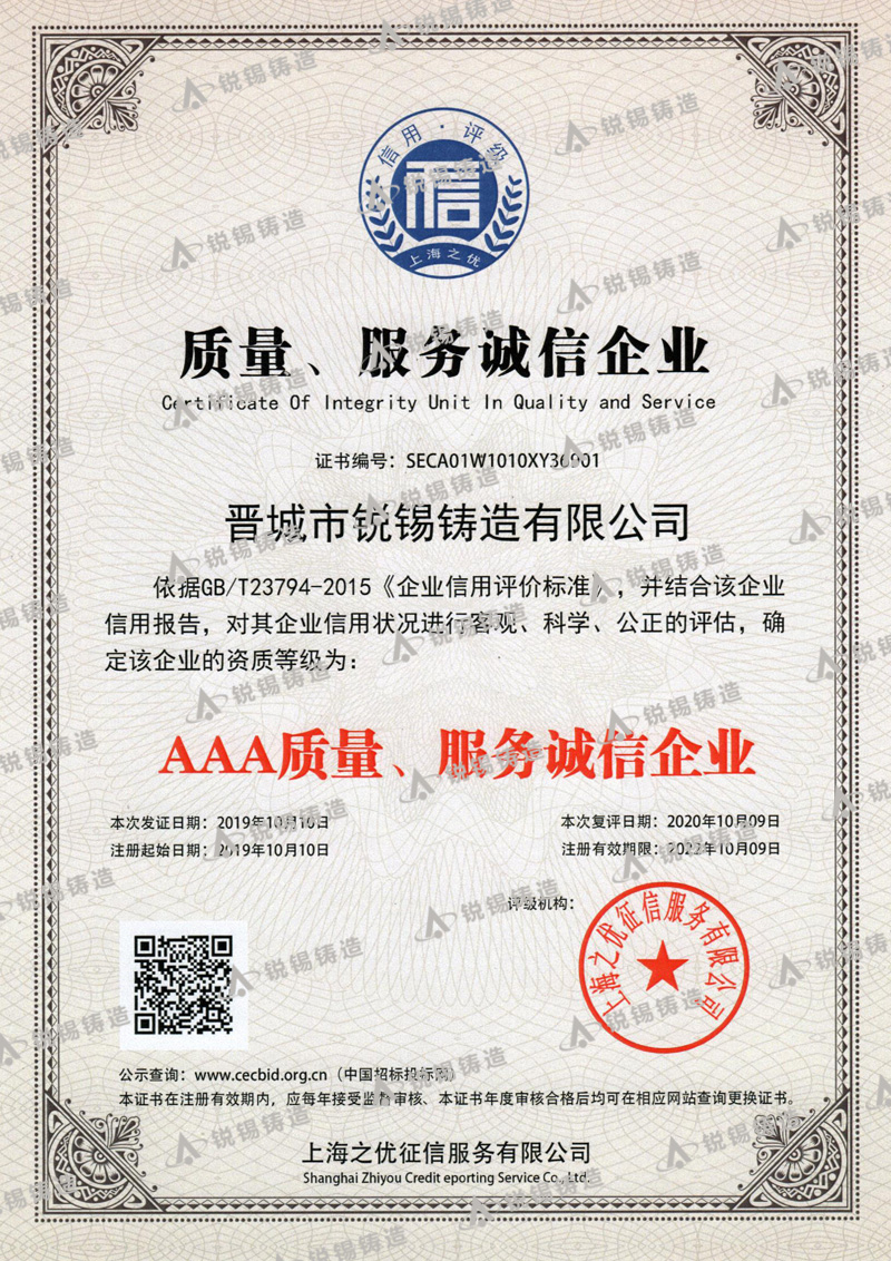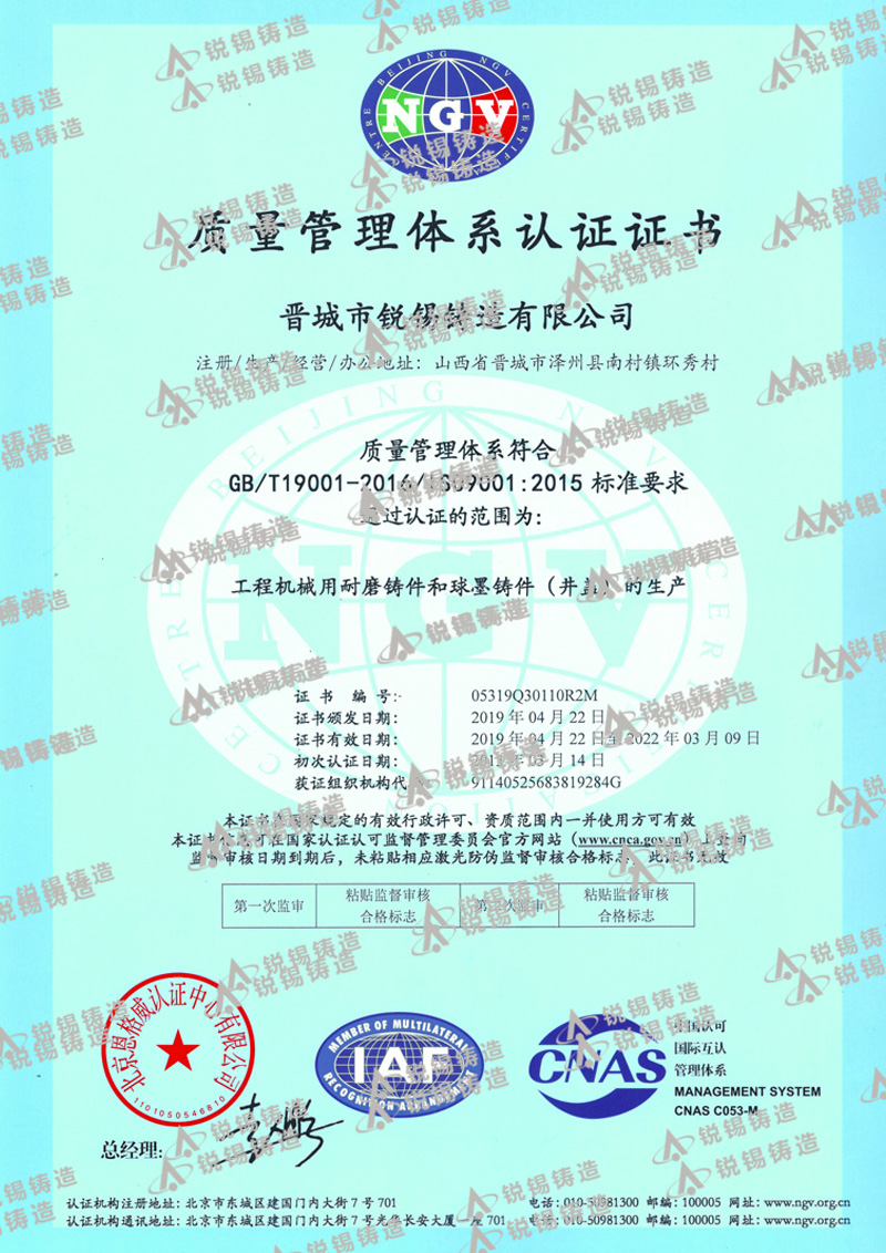 我公司生產(chǎn)的銳錫牌球墨鑄鐵件和鑄鋼件有嚴格的質(zhì)量管理,嚴格按照CB/T 23858-2009和GB/T 25628-2010 標準進(jìn)行生產(chǎn)制造,公司